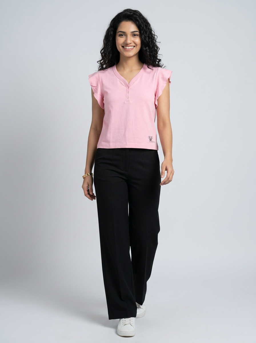 The Elefento Baby Pink Flutter Sleeve Crop Top is designed for those who appreciate clean, minimal style with everyday comfort.