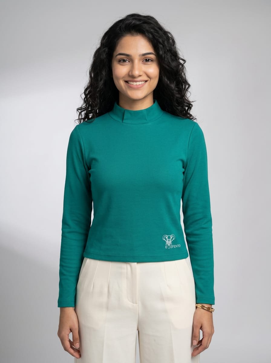 The Elefento Deep Teal High Neck Long Sleeve Crop Top is designed for women who appreciate clean, minimal style with everyday comfort.