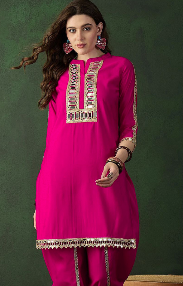 Embellished Mirror Work Roman Silk Tunic With Dhoti Pant