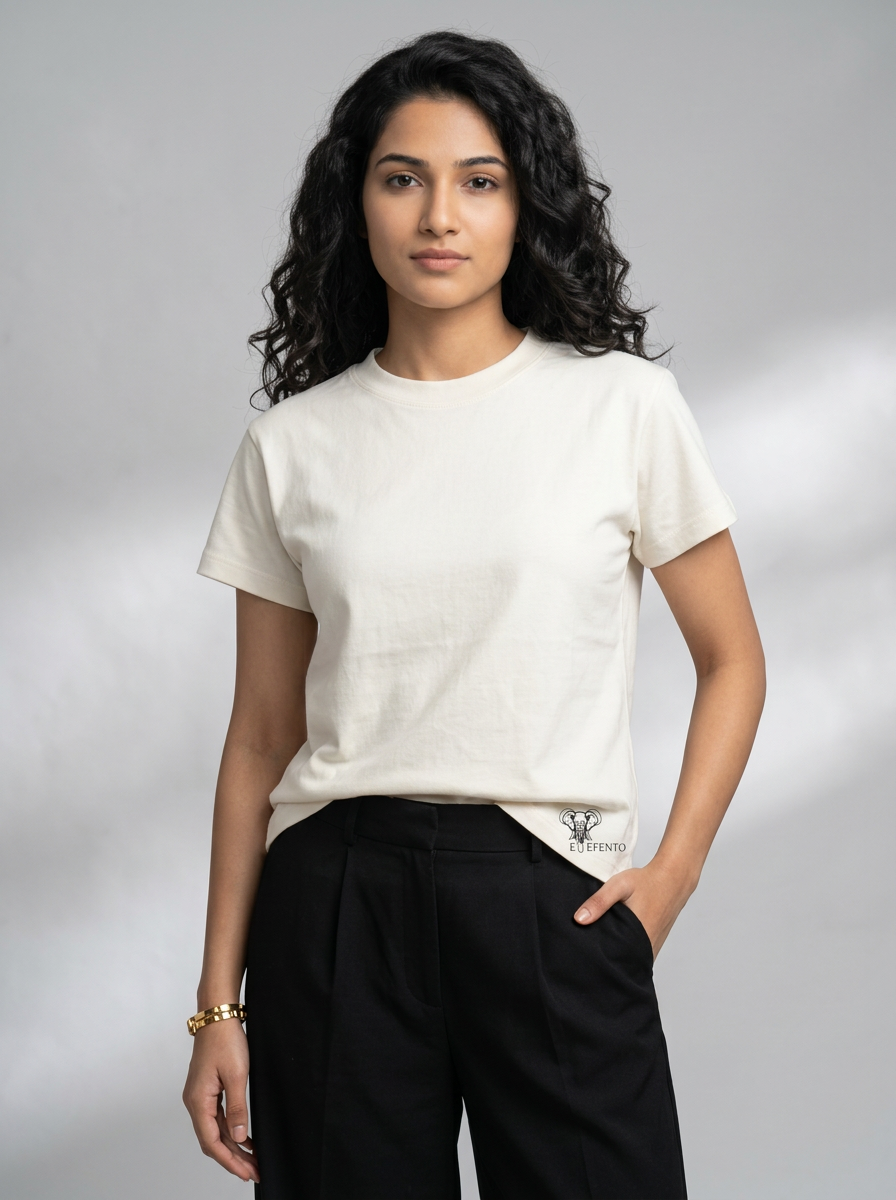 The Elefento Off White Classic Fit T-Shirt is designed for those who appreciate clean, minimal style with everyday comfort.