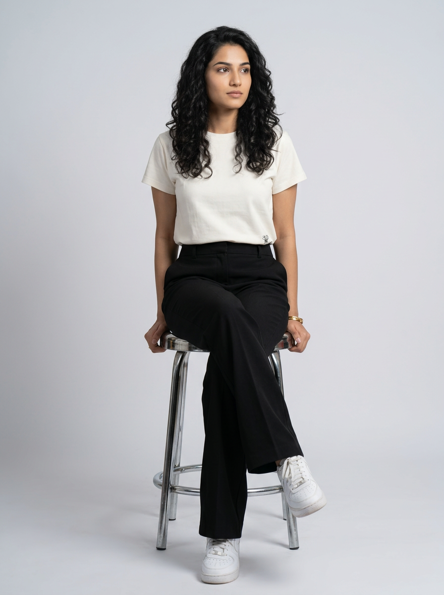 This piece pairs effortlessly with jeans, trousers, skirts, joggers making it ideal for casual outings, relaxed days, or simple everyday styling.