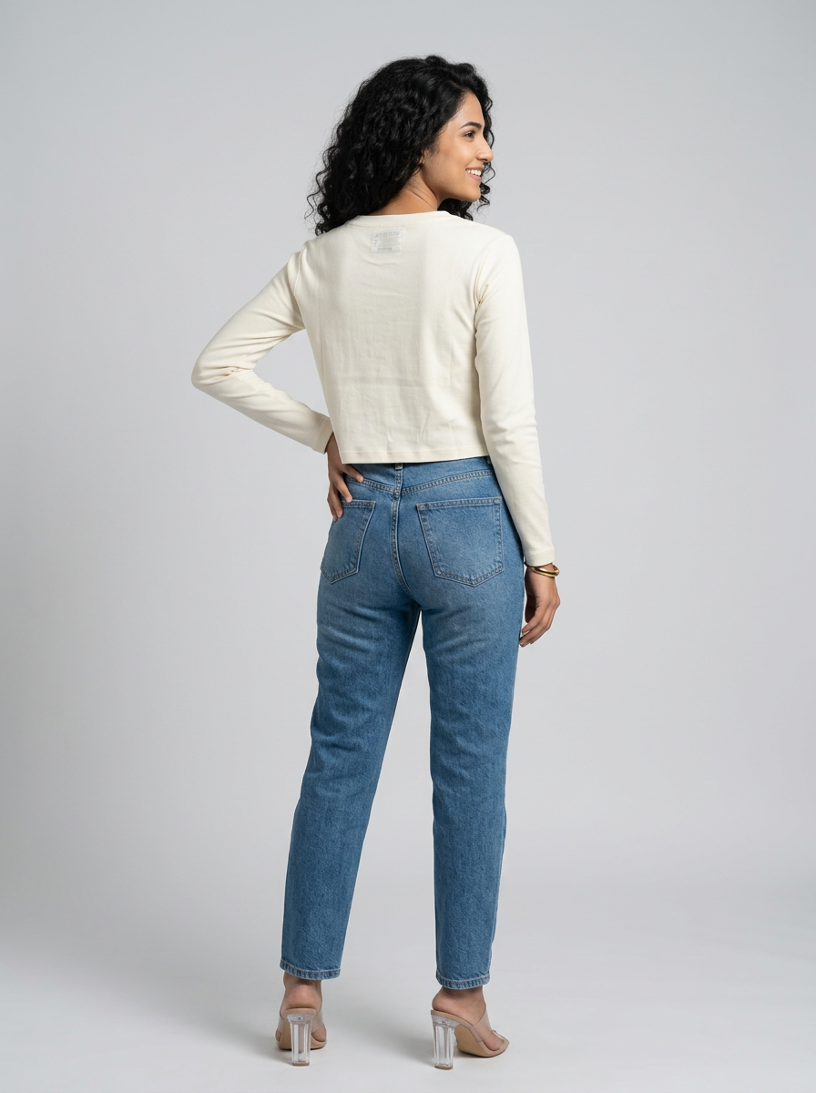 The Elefento Off White Round Neck Long Sleeve Crop Top is designed for those who appreciate clean, minimal style with everyday comfort.