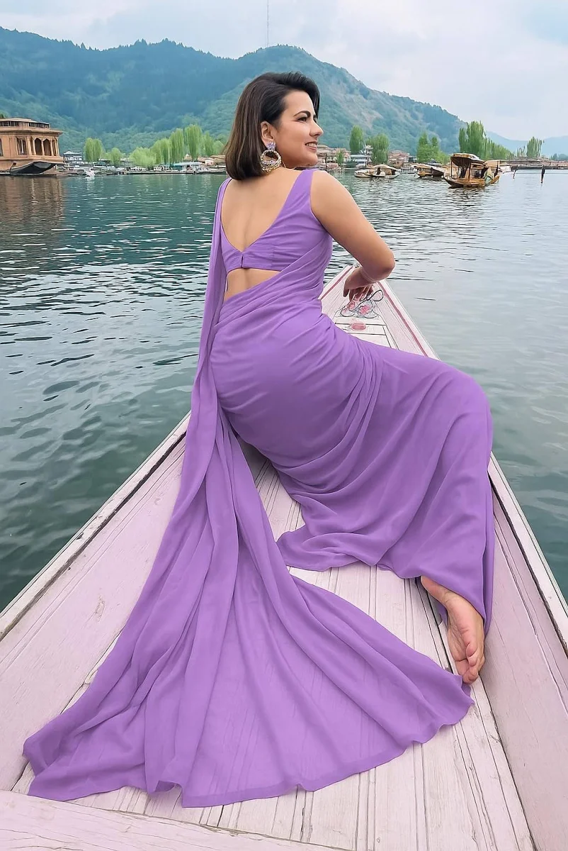 ANSHMJIMN Women's Plain Pure Georgette Saree With Unstitched Blouse Piece