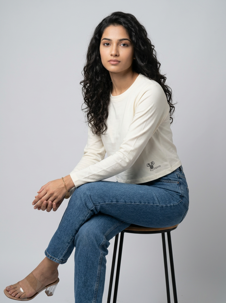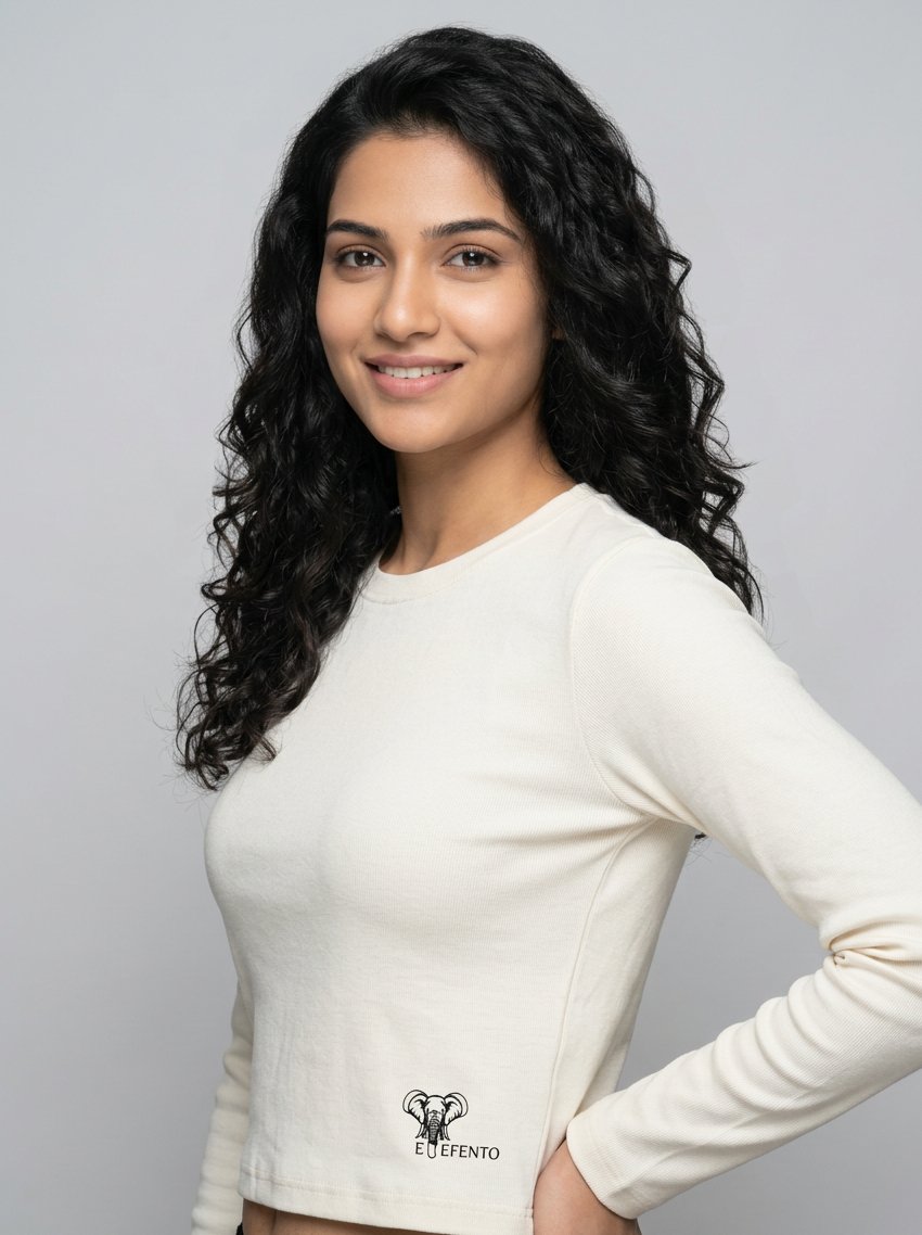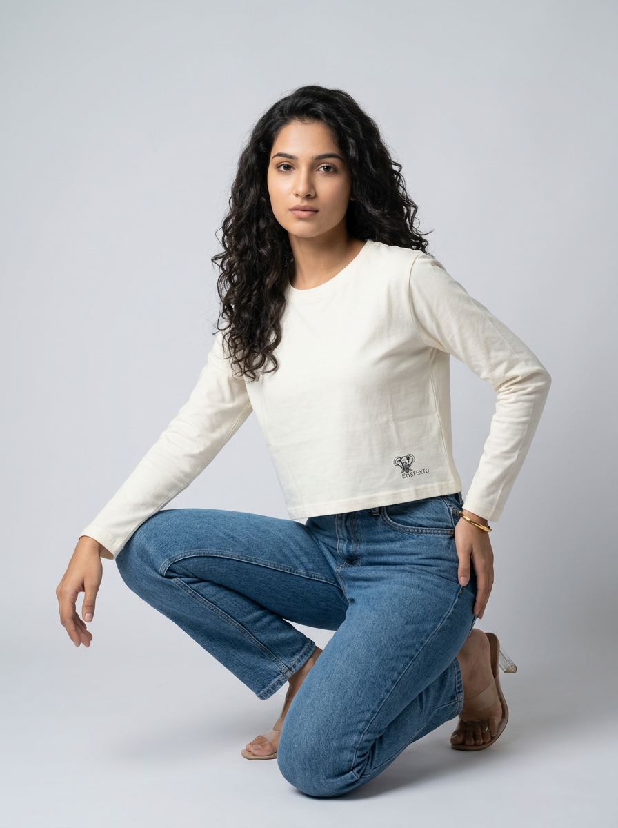 The Elefento Off-White Round Neck Long Sleeve crop top for Women is designed for effortless everyday comfort and timeless style.